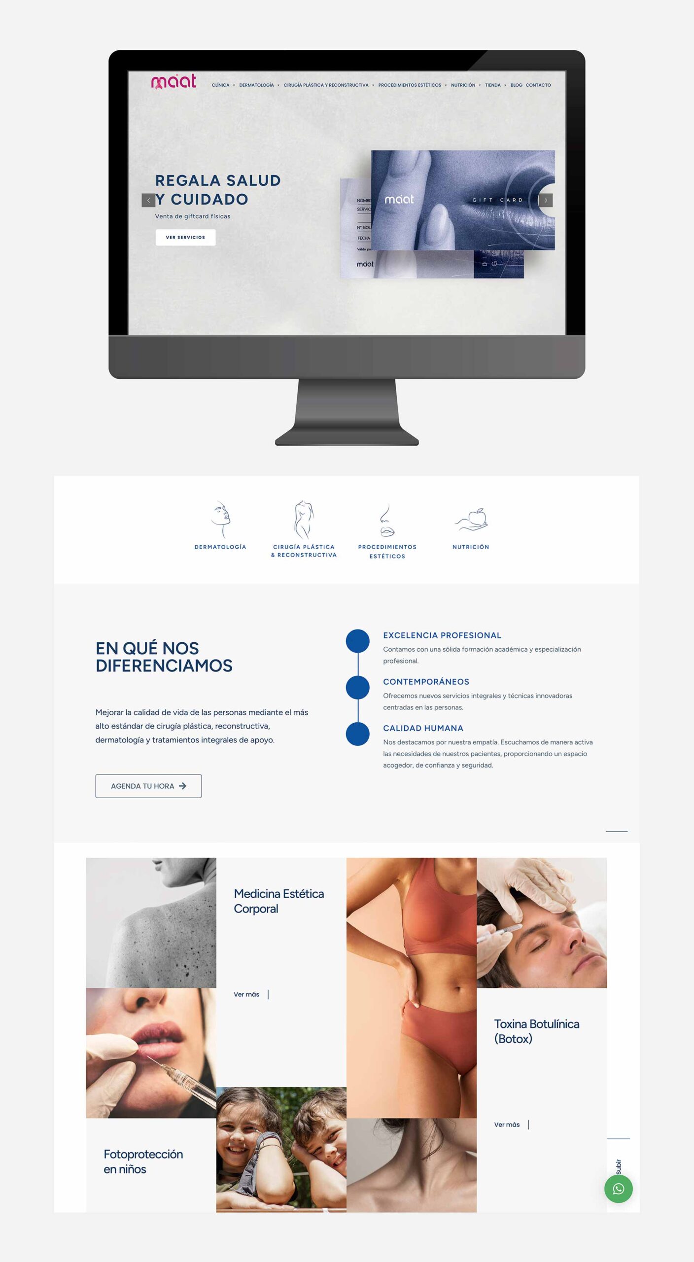 Creamos una estrategia 360° que abarcó todo: desde su relato y estilo visual hasta cada pieza de comunicación. Desarrollamos el sitio web, los videos, las sesiones fotográficas y el tono con que Maat hablaría. Diseñamos material impreso —carpetas, fichas y recetas— que extendieron su experiencia más allá de la pantalla. En paralelo, activamos campañas de performance y posicionamiento en Google para conectar con nuevos pacientes y construir una presencia sólida desde el primer día.